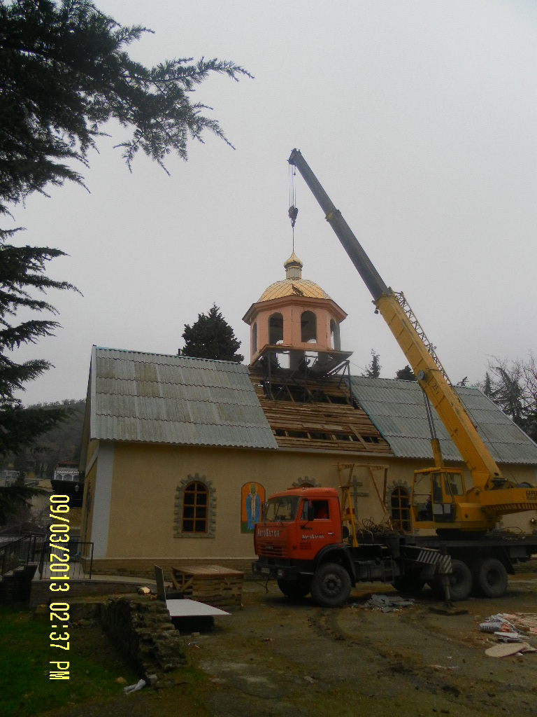 Слава Богу! Храм заметно преобразился ! Вот только не сейчас храм стал таким, не после сезона 2013 года. Крыша и купол были смонтированы гораздо раньше, в апреле 2013 мои друзья отдыхали в Рыбачьем и сделали вот это фото. На лицо очередная попытка исказить информацию и преподнести её в нужном ракурсе. Клип про храм, который появился на Ютубе еще весной, уже с фотографией обновленного храма. Может для кого то это мелочи, а по мне православие и ложь не совместимы.