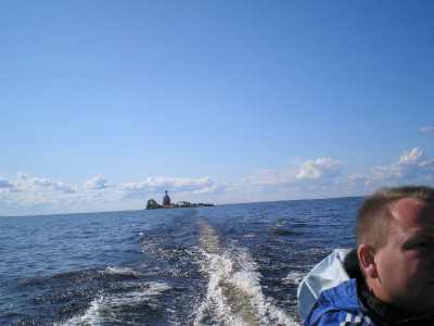 Дале пешком возвращаюсь в Кириллов. Прохожу переправу у канала, трапезничаю у магазинчика. Длинная прямая дорога, мимо автостанции, заканчивается у Кирилло-Белозерского монастыря. Начинаю его осмотр. Громаднейшая территория. Монастырь как бв в два "яруса". Самый внутренний – тот и есть сам монастырь. В храме мощи прп Кирилла Бело-зерского. Канун Рождества Иоанна Предтечи. Заявляю о себе в храме. Меня ведут к настояте-лю, тот благословляет в "странноприимный дом" – местная паломническая. Паломническая весьма убогая, на две половины – мужскую и женскую. Вода из умывальничков, нужно но-сить… Определяю вещи, заряжаю телефоны, просушиваюсь. Стоим Всенощное бдение Рожде-ства Иоанна Предтечи, затем трапеза. В паломнической выдержка из "Апостола" – принимать до 3-х дней во Славу Божию, а затем по трудовому послушанию. Из братии запоминается рБ Александр, который тут проживает для прохождения процедур в местной больнице. У него т.н. трофическая язва на ноге, он сильно страдает. После вечернего правила пробую его "лечить" по четкам – 150 "Отче Наш"… 7.07. Вторник. Утро – Литургия и причастие. Всей братии монастыря аж три монаха во главе с игуменом Игнатием…Да и один послушник, бойкий мальчик Антоний… После литур-гии трапезничаю и выдвигаюсь в район Вологды. Планирую встать в Новленском и прояснить пути переправы на противоположный берег Кубенского озера через Спас Каменный, либо про-сто поснимать и двигаться через Вологду на Устье… Фото Кирило- Белозерского и так хорошо известны, так что их не выкладываю В Новленском примерно в 13.30. Ищу лодку вдоль речки Ельма. Из разговора с моло-дежью, выясняю, что в селе прошла бурная ночь "накануне Ивана Купала" и все спят. Телефон-ные звонки знакомым ничего не дают. Мне советуют пройти в село Коробово в 3 км, это прямо на берегу Кубенского озера, может там что-то выйдет. Расспросы в Коробово безрезультатны. В одном месте строится сруб дома, спрашиваю мужиков, кто бы проехал на Спас Каменный. Все шутят, а один человек вызывается. Звать Сергеем, примерно лет 40-45. Сам он из Вологды, уроженец Коробово, сейчас у него участок в селе, обнесен каменной стеной, кулисные двери открывают въезд на территорию. Иномарка-джип. Приглашен на обед, после едем за бензином, заряжаем 50 л. плюс масло. С меня 1300 руб. Вот все и готово. Сергей жалуется , что ночью кто-то увел его лодку, еле нашел… Последствия сельской гулянки. С собой Сергей берет жену Ольгу, дает куртку, что очень кстати, скорость приличная да и ветер свеж. Пересекаем Кубенское озеро, Спас Каменный красиво вырисовывается из вод… На острове встречает нас злой пес, все время лает и пытается броситься. Жилое строе-ние одно – там музей обители, найденные там раритеты, крест с колокольни, остатки колоко-лов, иконы… Восстанавливается колокольня, на ней слабо копошатся трое рабочих. Действует часовня. Мощи прп Василия Спасо Кубенского погребены под руинами взорванного Спасо-Преображенского Собора… Один из рабочих спускается к нам, показывает музей, отгоняет пса, который уже успел порвать мне зубами сумку. Он жалуется, что в этом году вовсе нет финан-сирования, работы стали, так что и туго даже с продуктами. Ездить приходится далеко за 8 км в Устье… Отправляемся дале на Устье. Входим в устье реки Кубины, на правом берегу крупный поселок Устье, а напротив село Чирково с красивым погос